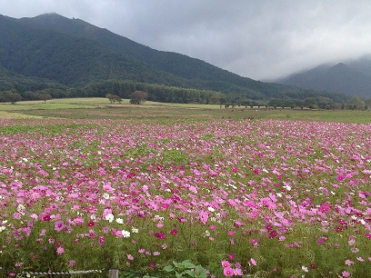 蒜山の秋の風景はススキの原っぱやコスモス畑。